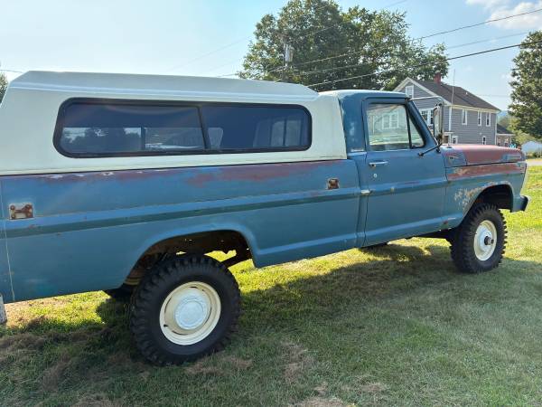 1967 F100 4wd long bed. 360 4spd. 2wd body on 4wd frame. Needs power steering finished and some odds and ends. But does run and move. New clutch, tires, shocks, some interior. 11,500