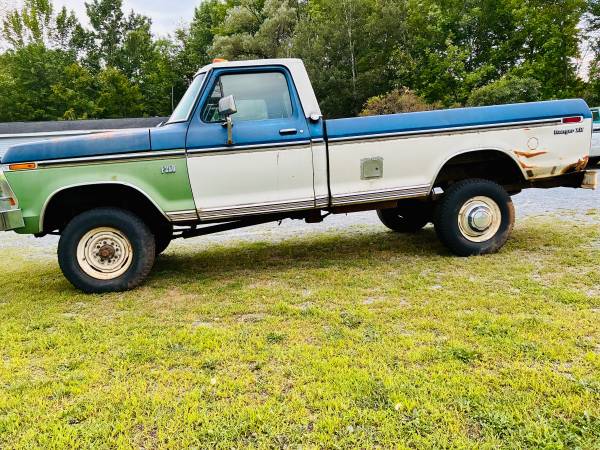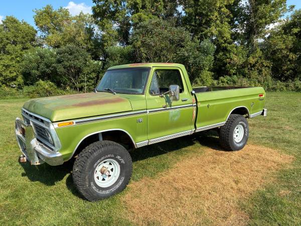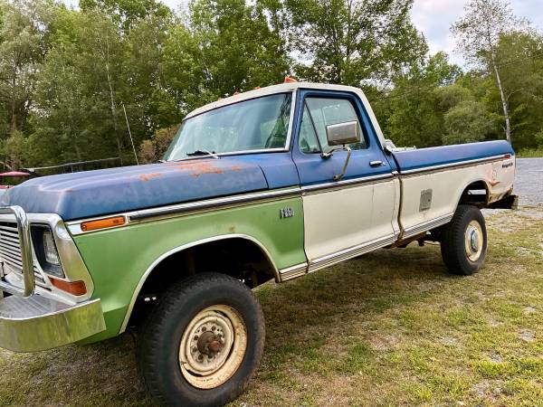 1974 F250 highboy. Divorced transfer full time 4wd. Was 360, now a sweet running 460. Power steering. Good engine and trans. Needs brakes. Have a nice original paint fender to replace the green one. A really nice highboy in the making on a realistic budget. 9800