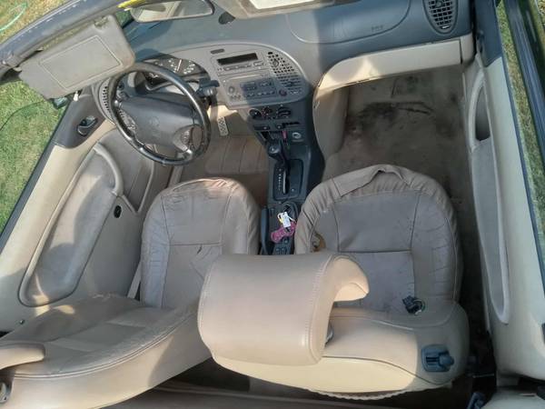 Interior has seen some better days, the driver side rear view mirror needs to be replaced, the exhaust behind the flex pipe will need work, the passenger rear emergency brake line was stuck, so it was detached so we could move the car freely, driver seat is stuck in place, and the battery was left in over winter, I was unaware of a power drain that existed, so it will need a new battery as well.