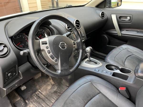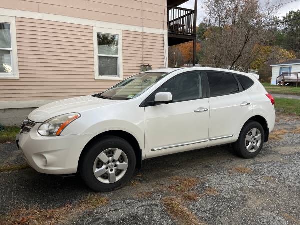 2012 Nissan Rogue SL AWD for sale with 148K miles. White exterior, black interior, leather seats, heated seats, A/C, cruise control, backup camera, undercoated, includes studded snow tires and WeatherTech mats, new brakes, inspection sticker through October 2026, and clean title. Price is firm at $5000. Cash only.
