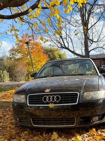 2004 Audi convertible for engine or body parts. Solid engine. Needs a transmission, new computer, wet inside etc. Would also be great for body parts-no dents, no rust.