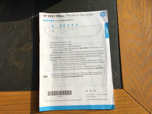Hewlett-Packard ENVY Photo 7164 , printer , copier , scanner . Needs new ink cartridge .