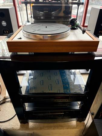 This is a highly desirable turntable and is in good working condition. It comes with an Ortofon Black cartridge ($699) with low hours. Checked by a tech, cover buffed and ready for you!