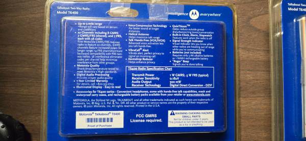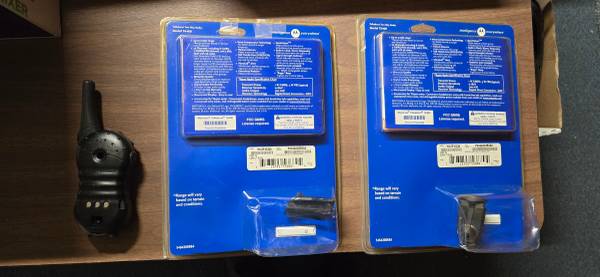 This is a set of 3 Motorola Talkabout T6400 Two-way radios. Two are in original packaging and appear to be unused and the 3rd is without packaging and is missing the clip.