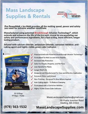We are one of New England's Largest suppliers of Ice Melt, Snow Shovels, Plow Stakes and Salt to Contractors, Homeowners, Landscapers and Towns/Cities. Over 10 years in business and we keep a large inventory on hand.