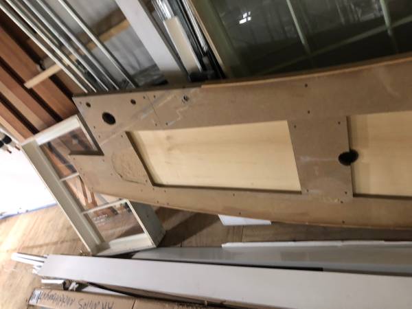 Countertop radius curved hardwood, repurpose as a bartop, store display, reception desk, work station, or? Clear coat finish.