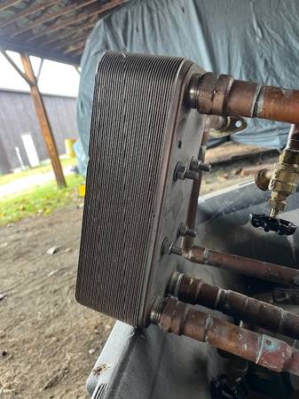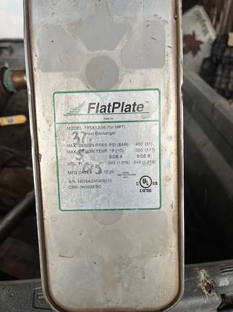 Two different sized flat plate heat exchangers. I believe the larger one is 36 plate and measures 5" x 12" x 3 3/4". The smaller one I think is a 20 plate and measures 3" x 8" x 2". Make an offer on...