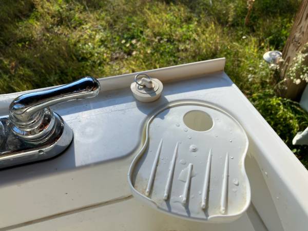Nearly brand new. Was a temporary sink for 2 years in my basement. Was used only a handful of times. Includes nearly new faucet and sprayer, bottom shelf, and plug. 36” tall (not including the faucet), outer width and depth are both 24”. About 14” deep. Please state exact day and time you plan to come and look at this and share your phone number. Thanks. If the post is up, it’s still available.