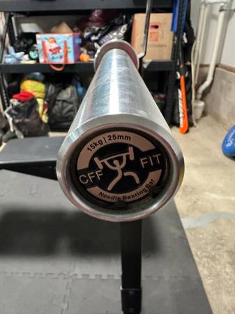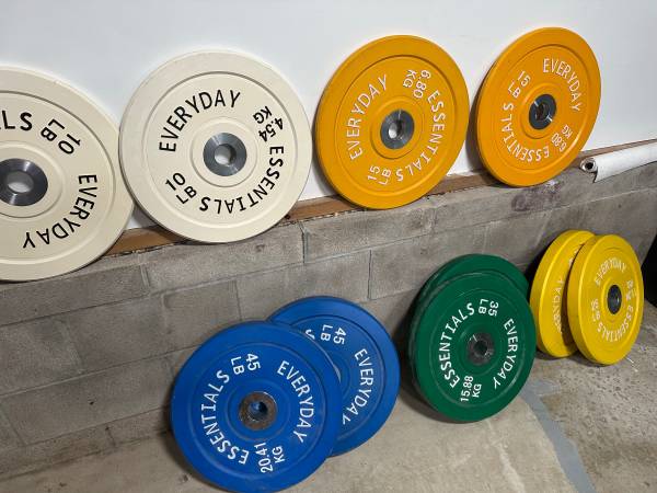 Excellent condition - barely used - kept in dry garage. Olympic weight bar, plates 2x10, 2x15,2x25,2x35,2x45 - handled well- no drop weights after a lift