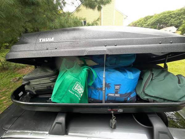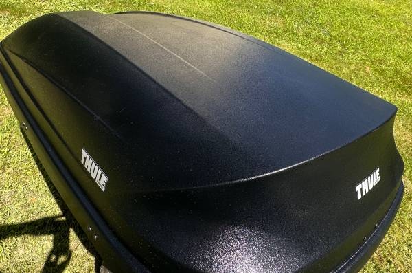 This Thule will pass as new. We used it for one 2 weeks trip when we had our small SUV (Mazda Cx-5), but, no longer use it as we have a full size SUV now.