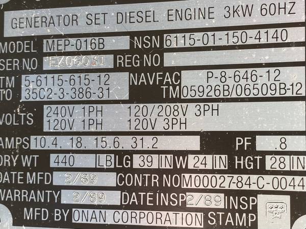 VINTAGE MILITARY ONAN GENERATOR SET PARTS -- - general for sale - by...
