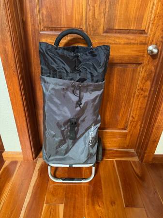 Like new shopping trolley by Playmarket with expandable inner sleeve. Solid wheels, escalator friendly!