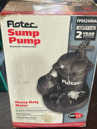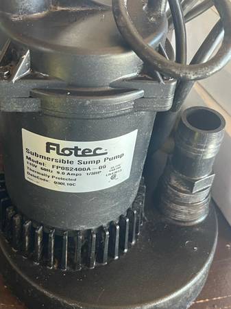 Selling 1/3 submersible automatic sump pump, asking $40.00 Thanks for looking. Great deal save money have a back up plan.