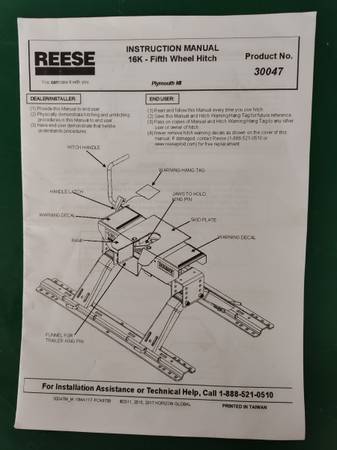 5 year hold Reese 16,000 lb, slider. Works well, traded in pickup, new hitch in new truck so need to get this out of my garage. $100 or best offer..... will need your own bed rails