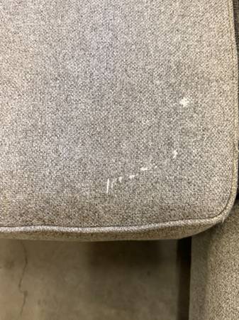 This couch measures 125x95 inches and is from a smoke-free, pet-friendly home. It is in great condition and has some minor marks on one cushion and the back arm. It has a nailhead pattern on the arms and below.