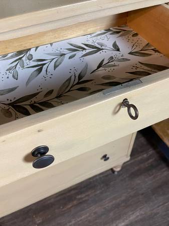 Inside, each drawer is lined with a charming botanical paper for a clean, updated look.