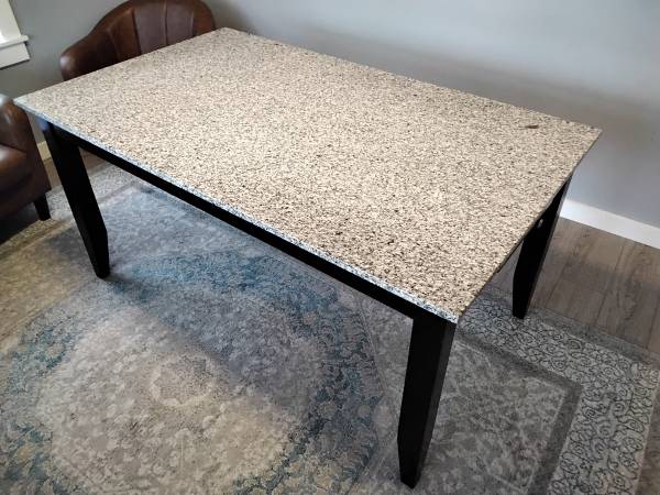 Granite top table very good condition, 3'x5'x30"high 3/4"thick top, this table is heavy 2 people needed move! Top is like new, black legs and frame. No delivery cash only.