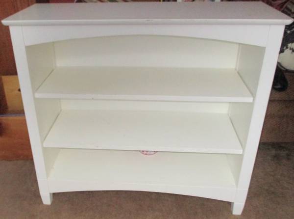 Bookcase white 3 shelf. Dim. 33"H x 37"W x 14" deep.