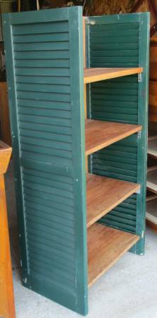 Window shutter bookcase green. Din. 55"H x 28"W x 16" deep.