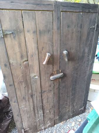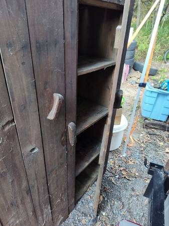 Out of an old farmhouse, this pantry cabinet is in solid condition for its age. Wonderful rustic piece