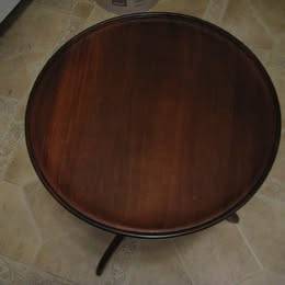 Like new. Stained top with black accent. 28 1/2" tall, 25" round top. $75