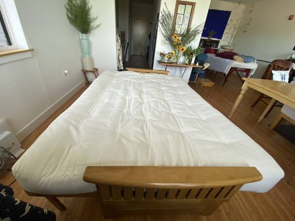 I bought this futon new from Burlington Mattress Co. less than one year ago for $500. It has been lightly used as a futon couch. It is in gorgeous condition. I have no pets, and get very little couch time!