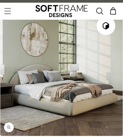 brand new queen softframe designs bed set. decided to get a different size. this is brand new. great design- soft and in the dune/light grey color