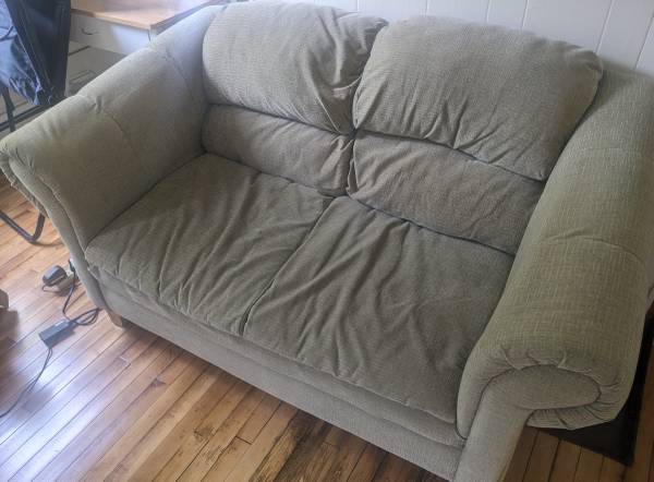 I am giving away a two seater sofa / couch. It has lived in a smoke free and pet free environment. It has one tear along the seam in the back. But, if the sofa is along a wall nobody will notice. It...