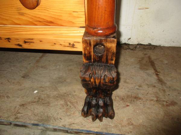hand carved hairy pawed feet. Has been disassembled, stripped and