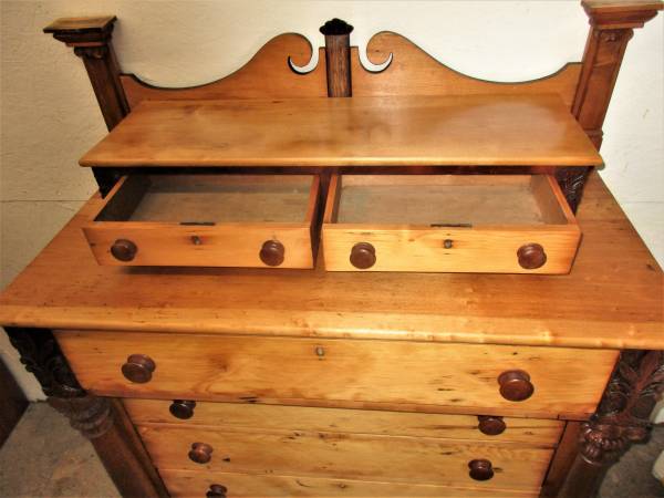 refinished with 4 coats of polyurethane, inside and out of drawer boxes