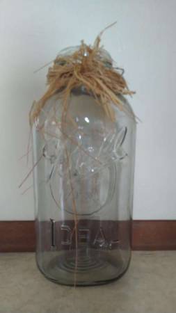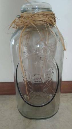 -Super heavy duty thick glass -Has decorative straw -Has lid with metal closure -Great for tall wildflowers, sunflowers or corn stalks! -Perfect for front porch entryways 19"H x 30"D