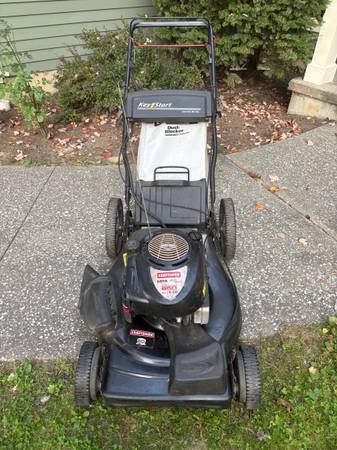 Selling this craftsman electric start/pull start 3 in 1 self-propelled lawnmower with a nice reliable 650 series Briggs & Stratton engine. You will need to buy a new charger to charge the battery because the one I have is getting weak. It will start up easy by pulling the cord manually. I have overhauled the carburetor, change the oil and sharpen the blade. Everything works as it should. I can deliver. Call, text or reply to this posting.