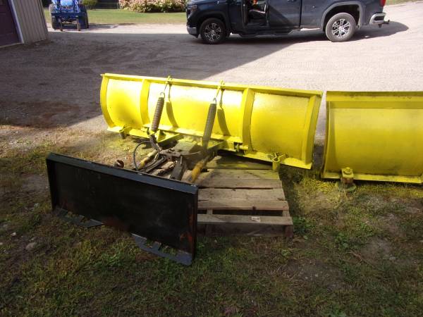 This is a Meyers 6 1/2 foot wide snowplow with a Quick Attach plate for a tractor or Skid Steer- Has new trip springs and adjusters- This is a power angle plow for use with a hydraulic valve. Delivery can be arranged, or I can load it on your truck or trailer Do not use chat to reply- I do not receive them