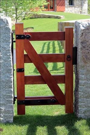 Add a custom garden gate to your garden, built with pine or cedar and exterior-rated hardware. Choose a style from the pictures posted here or send us a picture of something you like. We'll work with you to design and build the perfect gate for your home or garden.
