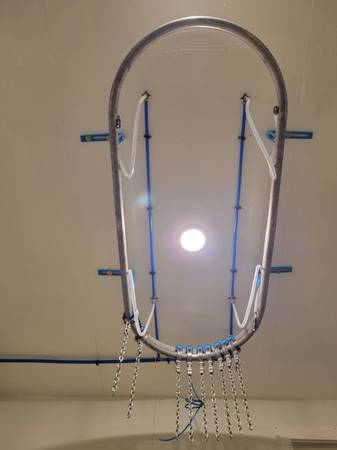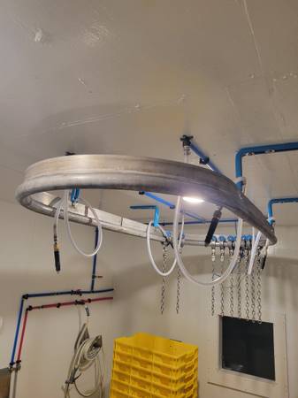6' long x 3' wide, ss, oval eviceration line. Was made by JBT Prime equipment per our request. Comes with trolleys, and 7 eviceration shackles. Asking $1200