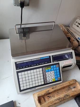 A CAS CL5500 label printing scale. 30lbs. Serviced by Farnham Scales. Asking $1,200