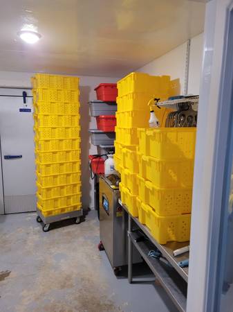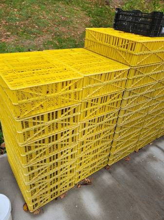 25 yellow Pakster poultry transport crates. no cracks or breaks. all lids are functional and latch. $70 ea.