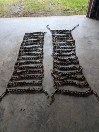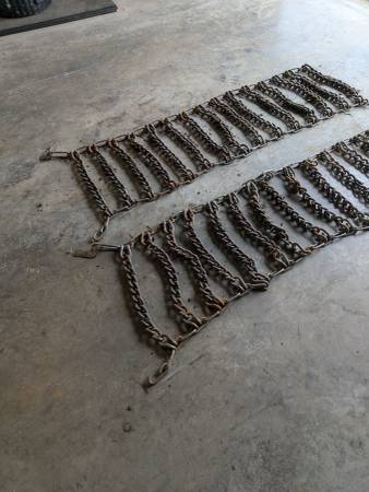 Nice set of V-Bar Ice chains for the front of your tractor. These came off my New Holland Boomer tractor with 8.25" x 16.5" rims. These chains are two link 17" wide, 55" long. TireChains.com has...