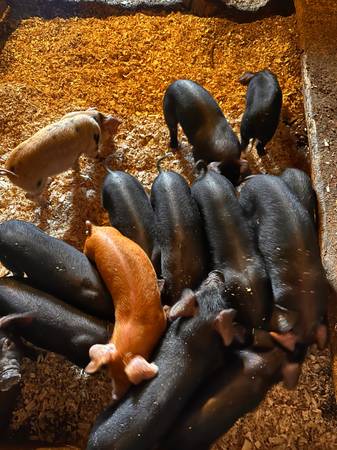 Meishan/Duroc/Old Spot gilts and barrows for sale. They will be ready to go next Friday 10/17. Hearty, fast growing piglets.