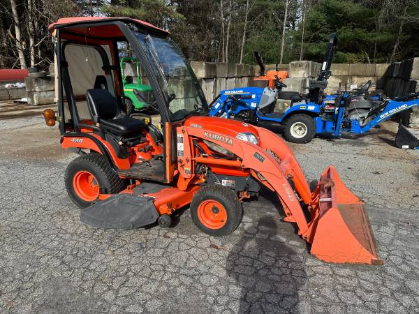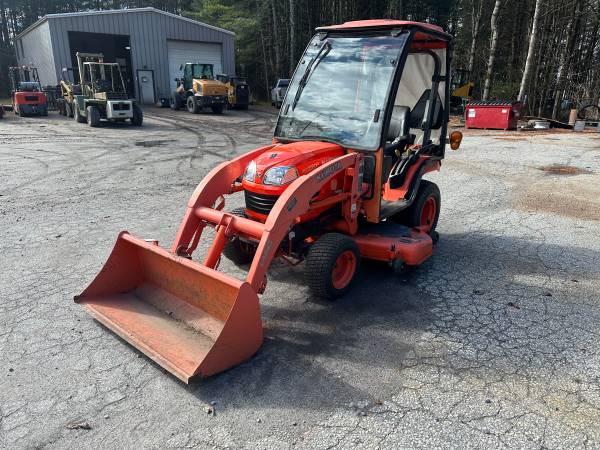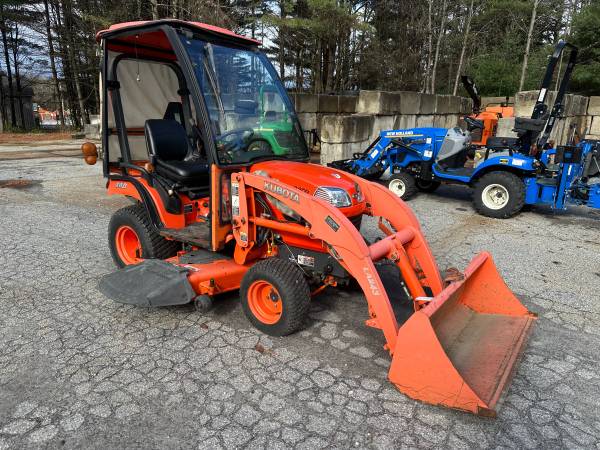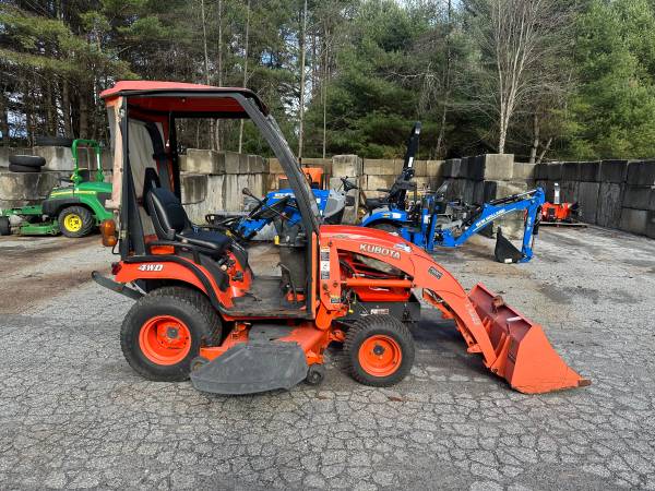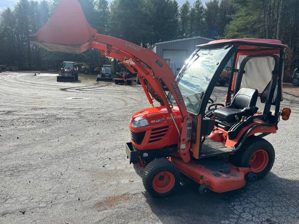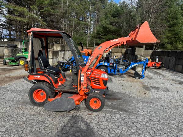 SOLD! You missed this one folks but search here by phone number or go to www.dionequipmentsales.com for more used equipment. Have this pretty darn nice, low hour, Kubota BX2350- Diesel powered, 4wd, power steering, hydro trans, rear 3 pt hitch, mid and rear pto. Has a nice mid mount mower deck, front mount snow blower, and a loader as well. Service was done not many hours ago but a year or two back. We just did a checkover, replaced on front wheel seal, and test ran all the implements. Works super! Only 495 hours on the tractor. Also has a Curtis Cab with heater, and glass flip up front windshield. Vt sales tax applies- Delivery available. Call 802-793-7023 to come take a look.