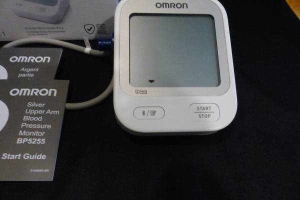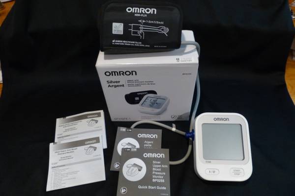 Up for your consideration is an OMRON BP5255 Blood Pressure Monitor. I bought it this year, but I don't use and I went beyond Amazon's return date. Save 35% (Amazon is $59.95) on this open box Omron BP5255. Consists of: Digitial Automatic Blood Pressure Monitor, Easy-Wrap ComFit Cuff 9"-17", Illustrated English/French Instruction Manual, English/French Quick Start Guide, Storage Bag upgraded to better Grey bag. See all picture for an accurate description.