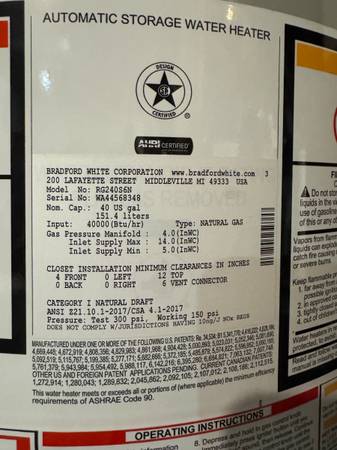 Brand new/ never used natural gas automatic storage water heater. Holds 40 gallons. Must pick up/ transport yourself, we can move it upstairs to the garage/ driveway from the basement where you’ll transport from there. Available in the New North End of Burlington.