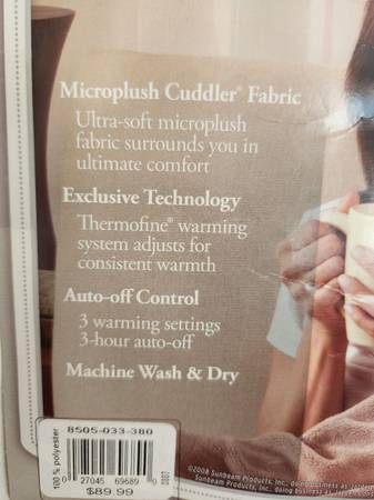 Sunbeam Warming Throw Blanket. Cozy brown microplush with 3 warm heat settings and a 3-hour shutoff. Machine wash and dry.