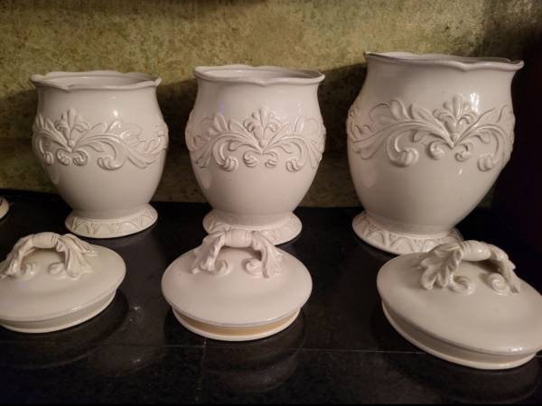 3 piece Ivory canister set.lids have rubber to suction on.if ad is on i still have them.thanksfor looking.