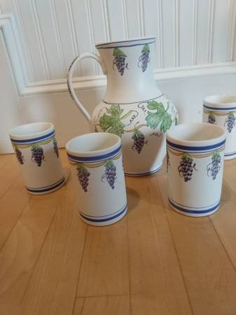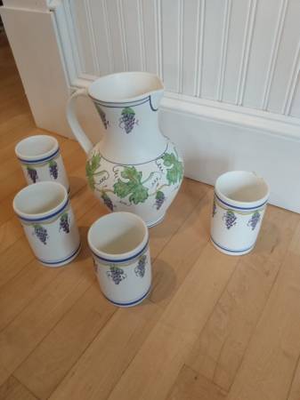 CERAMIC WATER PITCHER & GLASSES / SPAIN / BEAUTIFUL COLOR -...