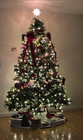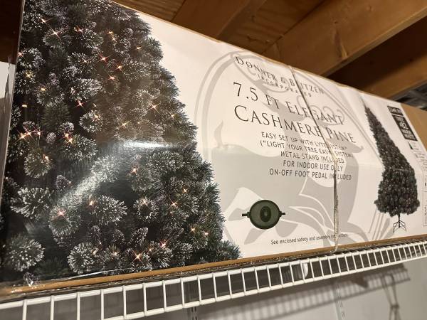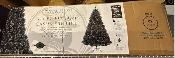 7.5 FT Elegant Cashmere Pine Christmas Tree, gently used and in excellent condition. easy to assessable. 550 built in pre-strung warm white LED lights still work perfectly. We have only used it a few times, and it looks amazing when decorated. $60