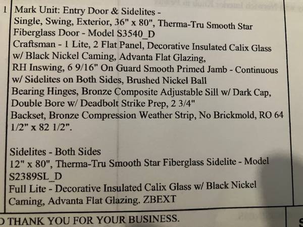 Therma-Tru Smooth Star front door with sidelights. $2,250 OBO. Cash only. Local pickup.