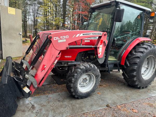 Just in folks, pretty nice 2009 or 2010 (engine build tag is nov of 09, so I would call it a 2010) Massey Ferguson 1660 compact tractor with cab and loader with skid steer style quick attach, 60hp, power shuttle dyna qps transmission. 4wd. Has a few hours (4368) but is in pretty darn nice shape. Starts, runs operates excellent. Has heat and ac- heat blows hot, tried ac and seems to work but in all fairness was only 50 degrees out so hard to confirm. Have service records since 2014- regular yearly oil and filter changes. pto, hitch, hydraulics all feel good. Cab is clean for age. Overall cosmetics are pretty decent for age/hours- Paint is good on tractor except for some flake on one side of hood- loader is faded like they all do, otherwise decent looking tractor. The only bad thing I can see mechanically is it has a small oil leak mid span of tractor. Its not pouring out, it doesn't go through gallons of oil in a short time, but it does stay damp underneath and will drip slowly. Probably not any leakier than most 15 year old tractors out there but always like to point out any issue I am aware of so there are no surprises. - I have looked a little and can't pin point exactly so selling just the way it is. Could be as easy as a line or fitting, could be more difficult like a rear main seal or trans input seal. Having a hard time verifying if hydraulic or engine, looks more like hydraulic to me but hard to tell by the time it runs down. Go price a new 60hp compact new, 60-70k, and emissions crap to deal with on the engine- This unit is pre emssion due to age so one less thing to worry about. Priced to sell @ $20,000! Vt sales tax applies unless delivered out of state. Delivery available. Call 802-793-7023 to come take a look!