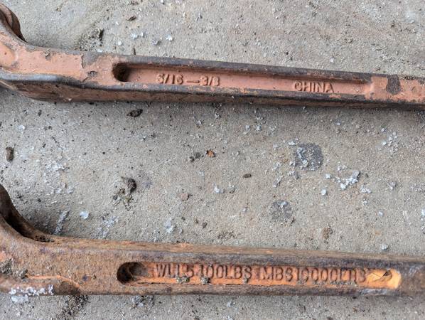 A pair of cam style chain binders for sale. They fit 5/16-3/8 chain.