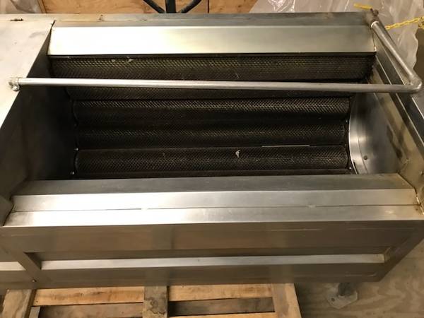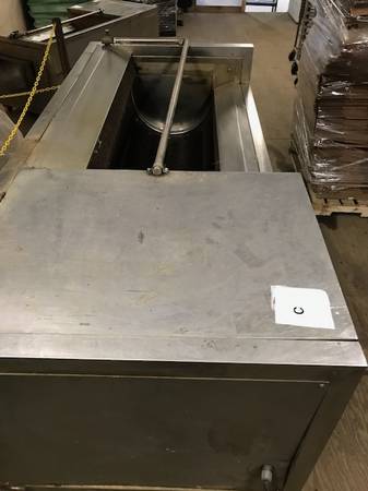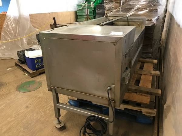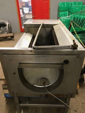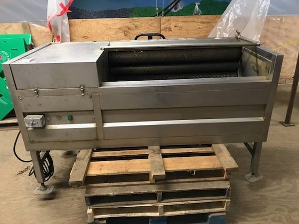 The FCPQP1200 brush washer is a motorized machine that is used for cleaning root vegetables, such as potatoes. Selling as is.